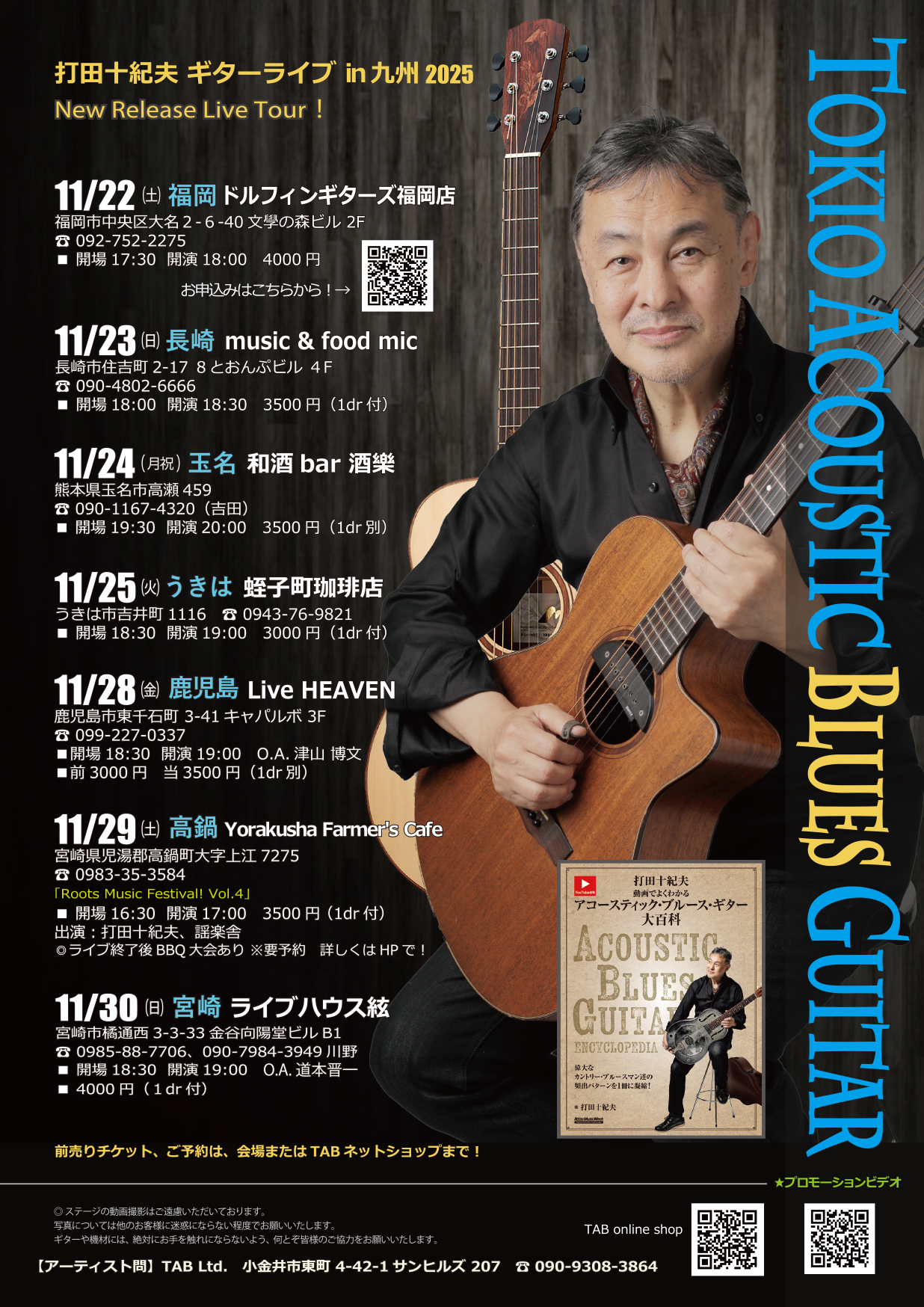 【ご予約・ご案内】打田十紀夫 九州ツアー2025 (11/22-30)