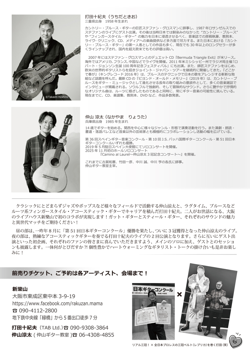 4/18(土)打田十紀夫ライブ:ゲスト仲山涼太 at 新樂山 【前売りチケット】